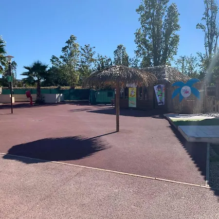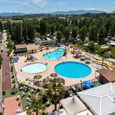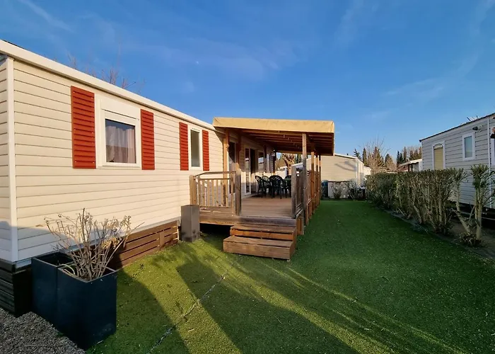 Mobil-Home 2 chambres camping 4 étoiles à Fréjus offre une expérience de luxe avec une jardin bien entretenu et une piscine extérieure. Chaque mobil-home dispose d'une terrasse où vous pourrez profiter du soleil. L'établissement est entouré de nature, tout en étant proche des activités aquatiques de la région. La climatisation assure un confort agréable même pendant les journées chaudes. Ce camping est parfait pour ceux qui souhaitent explorer la belle Côte d'Azur.